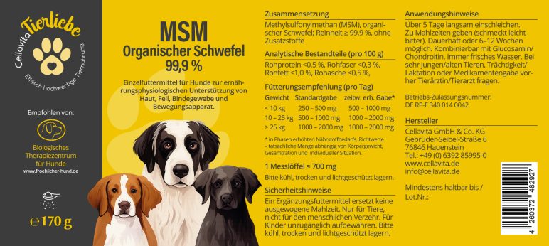 MSM (Organischer Schwefel) -Ergänzungsfuttermittel für Hunde